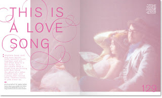Nicole Michalek and Kristin Eddington are the designers at Nylon. I might be wrong but judging from her website, I think Kristin does most of the typographic designs. I'm gonna see if I can get an interview with either of them as I absolutely love what they do. Here are some examples of the lovely spreads within Nylon: